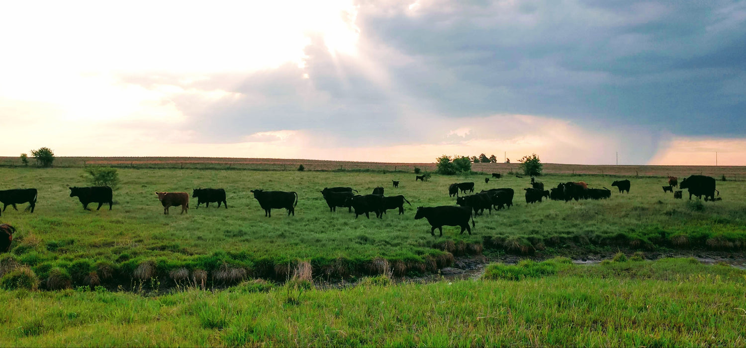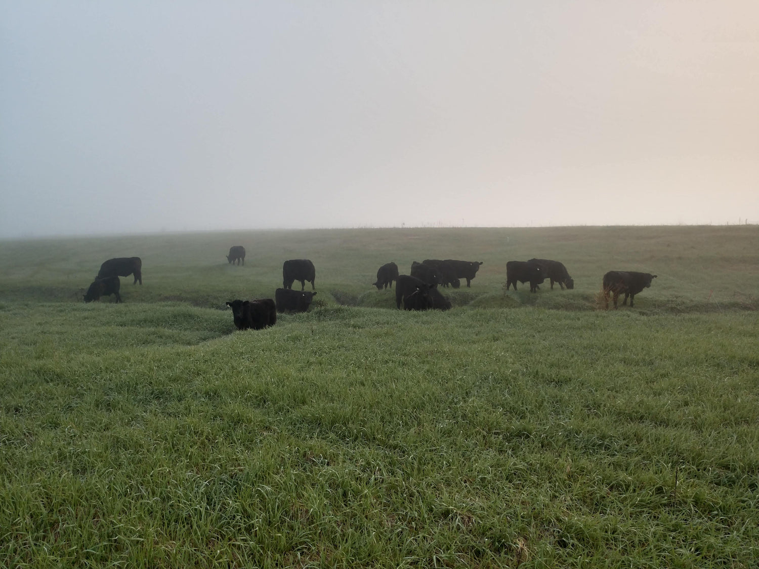 OUR HERD CONSISTS OF ANGUS CATTLE WITH THE GENETICS TO FINISH WELL ON FORAGE. "WHAT IS FORAGE?" YOU ASK. ON OUR FARM, FORAGE CONSISTS OF NATIVE PASTURE AND A DIVERSE MIX OF COVER CROPS WHERE WE UTILIZE ROTATIONAL GRAZING, WHICH IS MOVING CATTLE EVERY FEW DAYS TO BETTER UTILIZE THE FORAGE AND IMPROVE THE HEALTH OF THE SOILS. WE STRIVE FOR OUR ANIMALS TO HAVE LOW STRESS BY HANDLING THEM IN A GENTLE MANNER AND ENSURING THEIR NUTRITIONAL AND ENVIRONMENTAL NEEDS ARE MET.